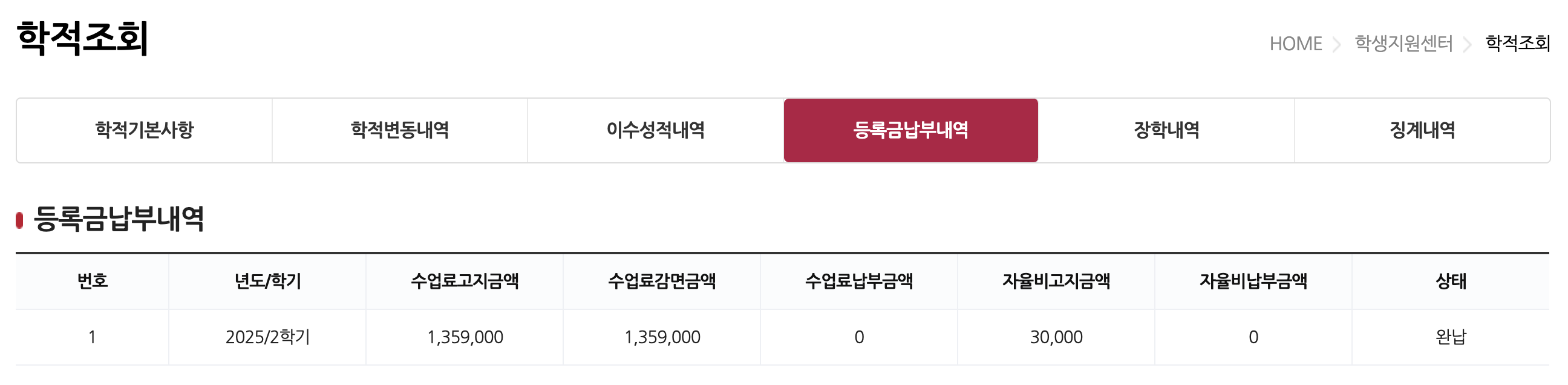 5과목 듣는데 0원 들었다. (듣는 학점과 등록금은 비례함) 사이버대는 등록금이 싸고, 여러가지 장학금을 많이 준다. 나는 학교에서는 무슨 다시도전 장학금이던가,,? 그런거 좀 받고, 나라에서는 내가 셋째라서 국가장학금(다자녀 전형)을 받아서 결국 등록금을 안 냈다. 아 근데 국장은 20대때 국장을 안 받았어서 지금 받을 수 있었을지도? 뭐 그건 잘 모르겠다. 어쨌든 돈 내고서라도 공부해야겠다고 다짐하고 들어온건데 막상 공짜로 다닐 수 있게 되니 좋았다. 내가 받은 장학금 말고도 매우 많은 종류의 장학금이 있어서 대부분 매우 적은 금액 또는 공짜로 다닐 수 있다. 그리고 나처럼 이미 이전에 다른 대학을 다닌 적 있는 사람이면 1학년 신입 말고 3학년으로 편입학 하면 된다. 그럼 2년만 다니면 된다. 그래서 사이버대는 전체적으로 금액 부담은 없는 편.