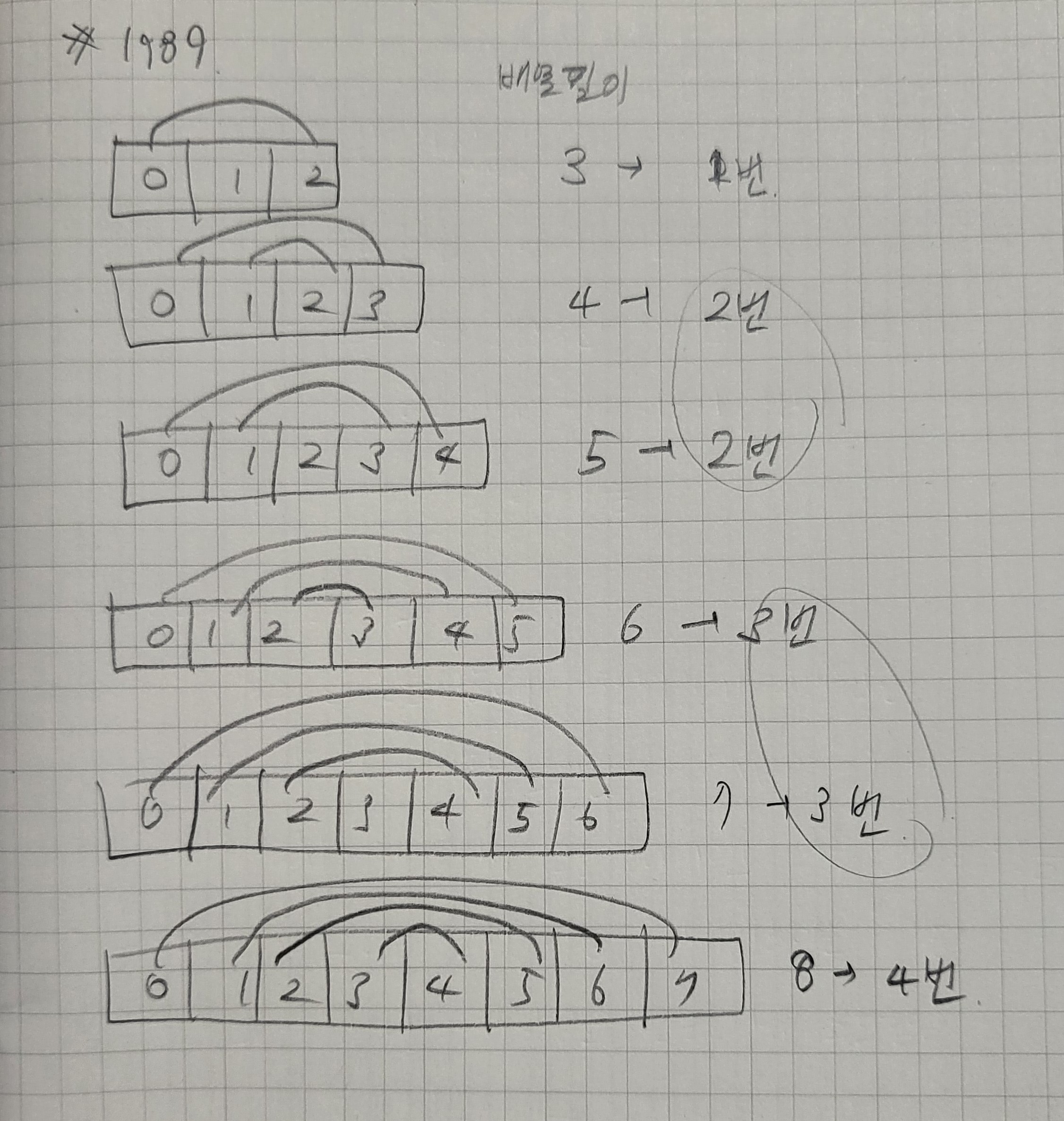 8. 배열길이 n일때 n을 2로 나눈 몫(n/2)번 그 반복문을 지속했는데 반복문 안 끝났다? 그럼 회문이 맞는거라서
