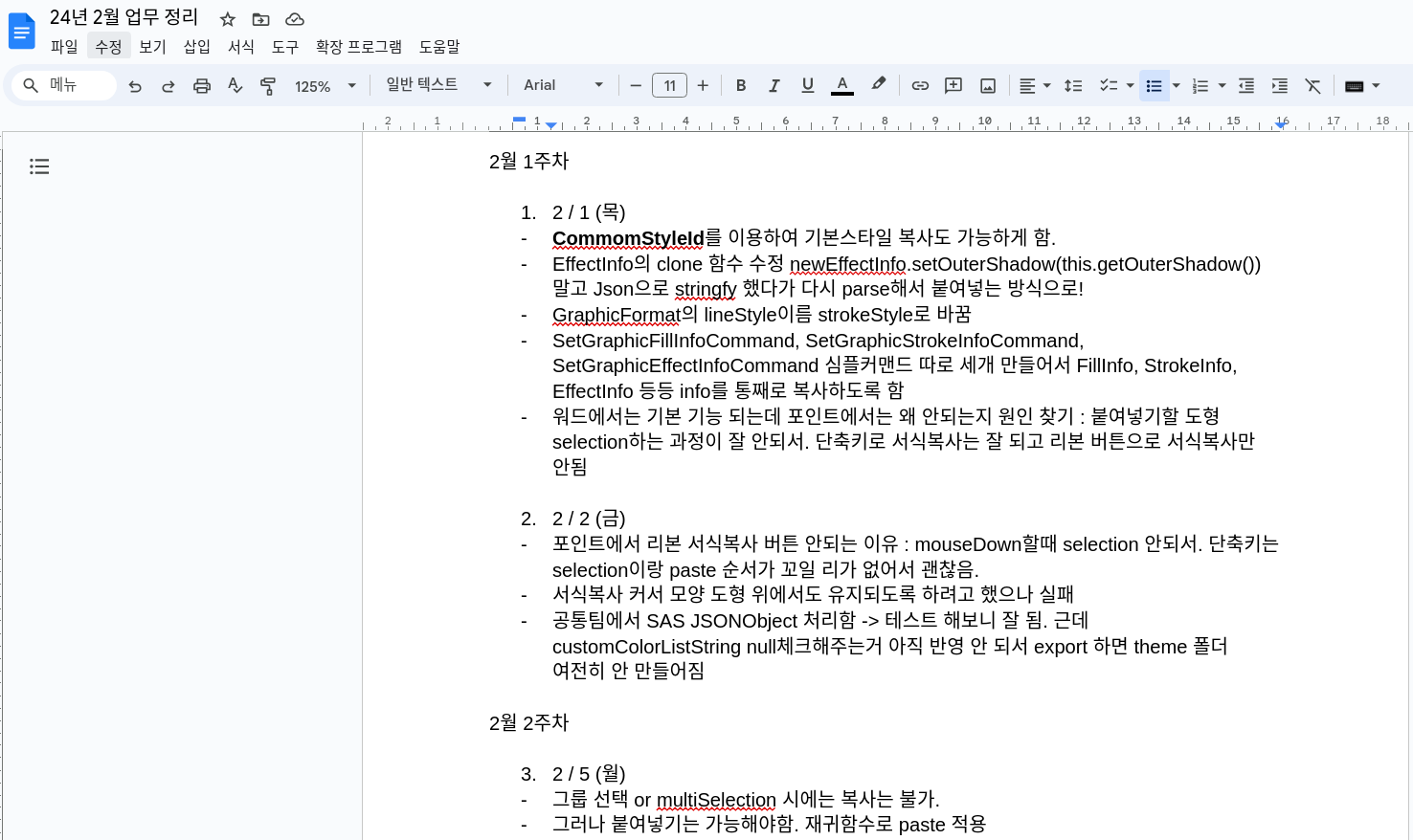 다행히 내가 입사한지 첫날부터 했던 작업이 있다. 바로 구글 독스에 매일매일 업무 내용 적기!!